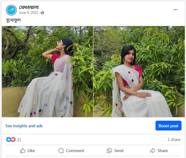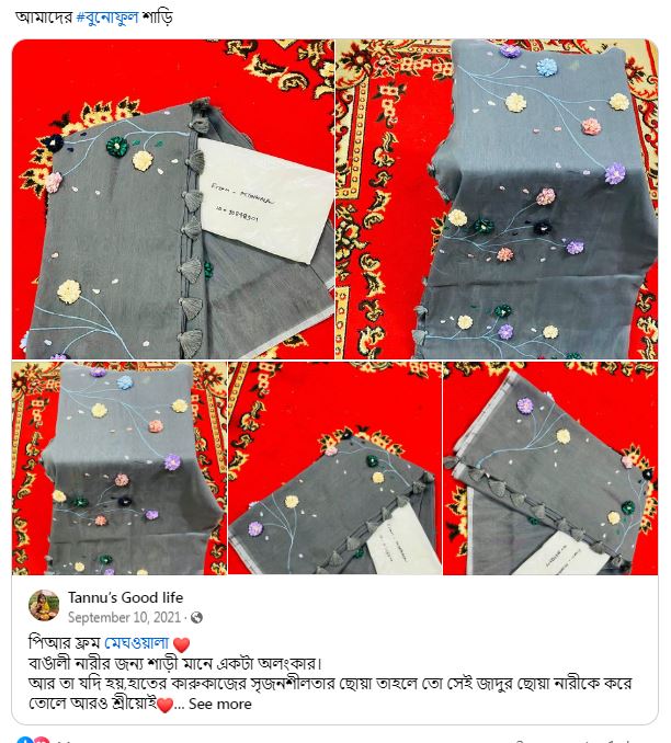 Sharee - বুনোফুলMaterial - HalfsikLength - 12 HaatMedia - Manual Thread & HandpaintVIDEO -https://www.facebook.com/reel/726533302850135https://www.facebook.com/reel/1761080727677421https://www.facebook.com/reel/872978987846752